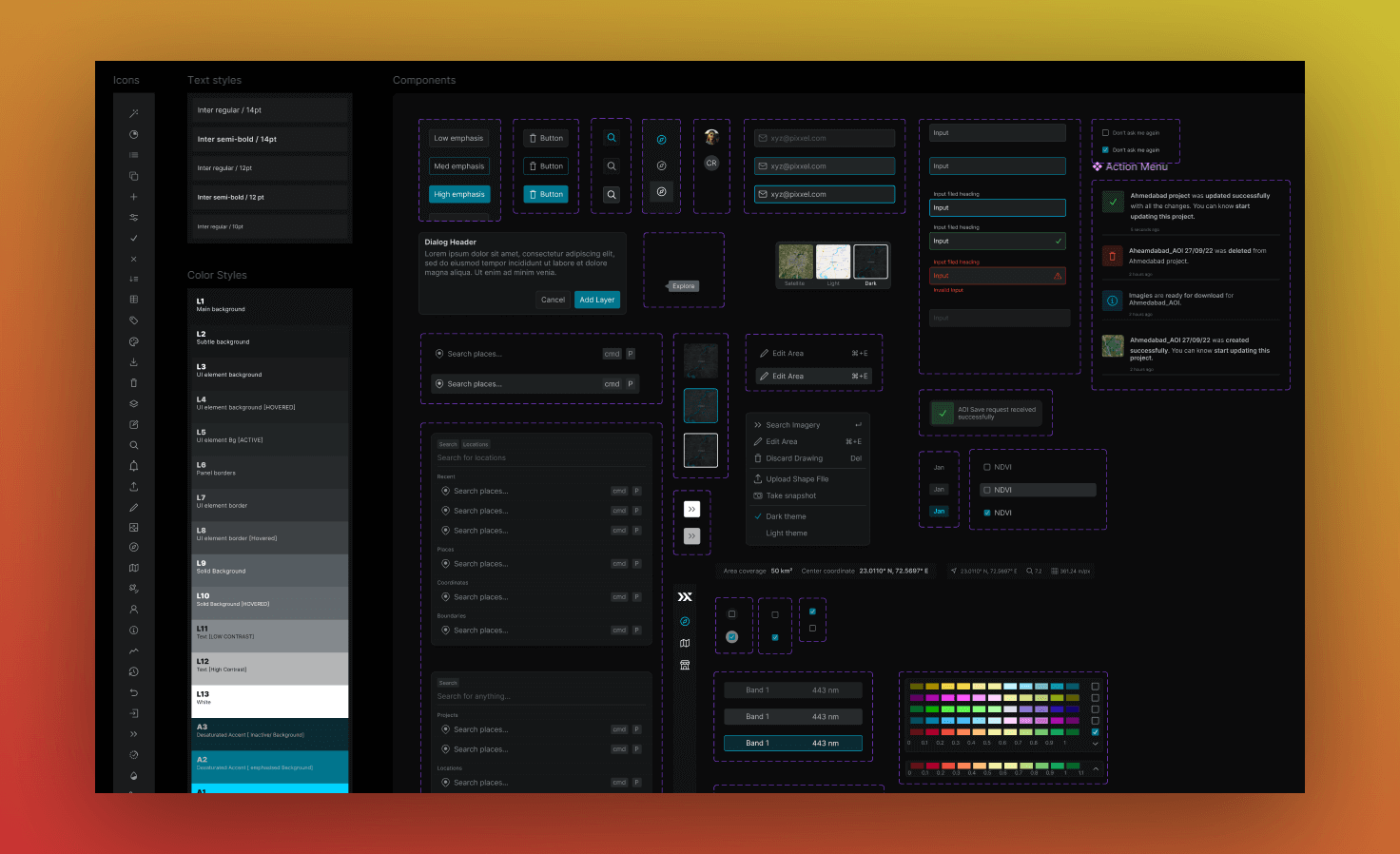 I co-led the UI design for Aurora, Pixxel's Earth observation platform that transforms complex satellite imagery analysis into an accessible, streamlined workflow for users across agriculture, forestry, and climate science industries.